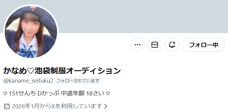 【かなめちゃん X】@kaname_seifuku2📲