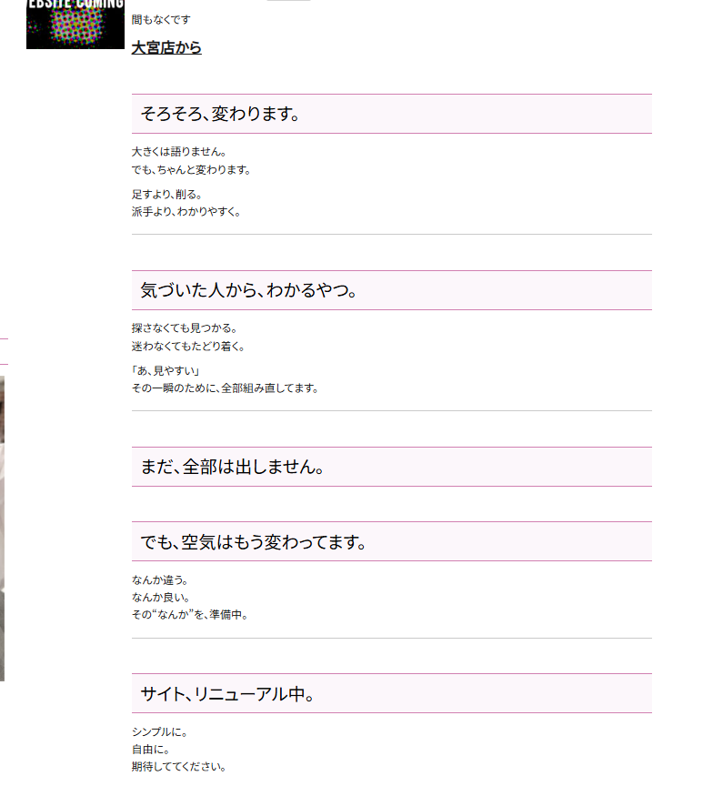 ちなみに大宮店のHPリニューアルのとき(おそらくAIによって)書かれた当店からの告知分が下の画像なんですが