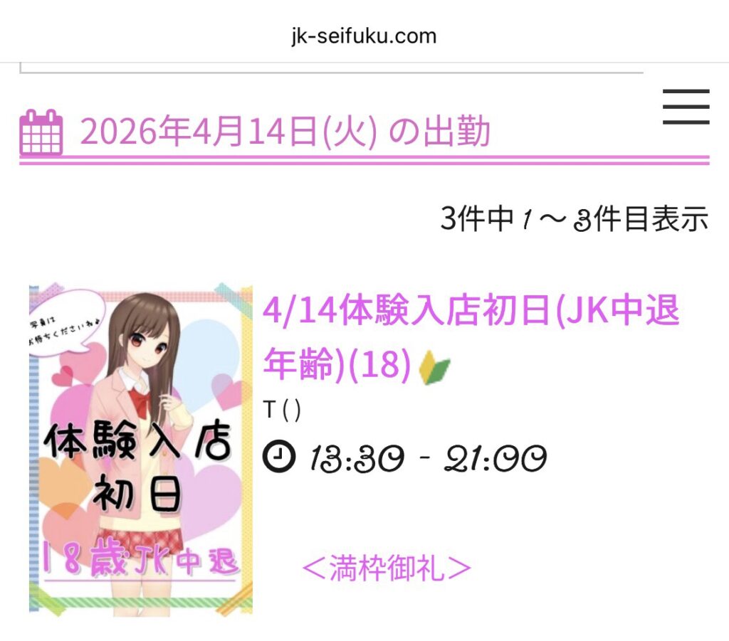 もちろん体験入店初日は既に<満枠御礼>です