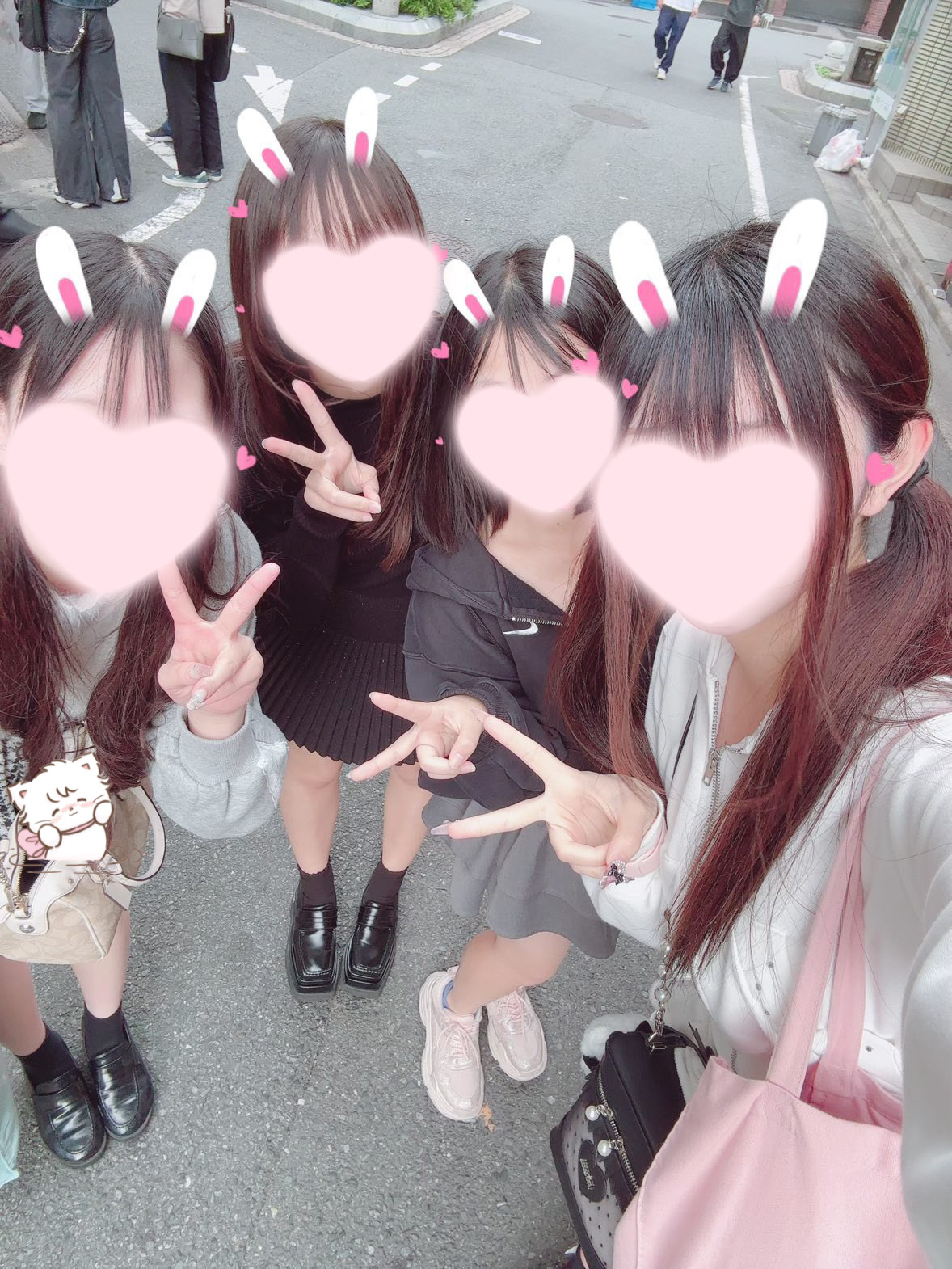 この間かなめちゃん、さなちゃん、めるちゃんと写真撮ったよ〜・ᴗ・ )੭”中退年齢組で仲良し🫂🫶🏻